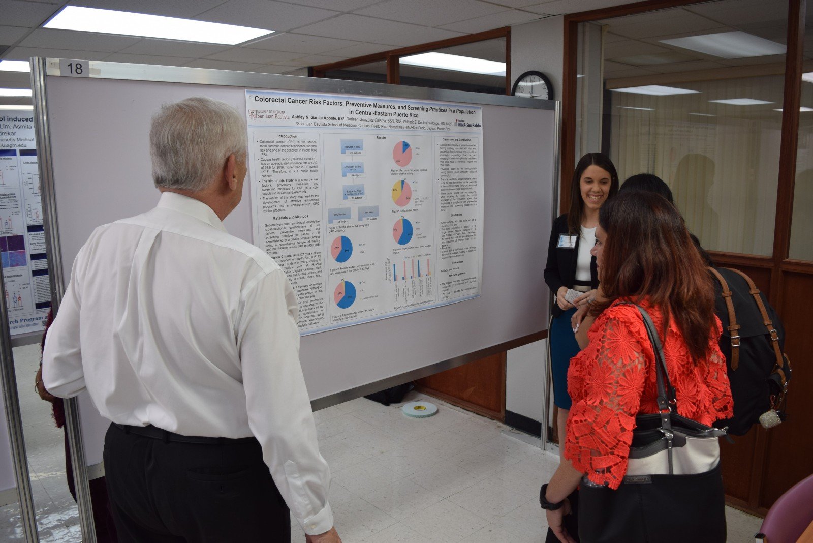 The 60 main presenters included students from undergraduate, graduate, and doctoral levels and medical residents, these last ones from the Manati Medical Center and UPR-Medical Sciences Campus. Most of the undergraduate students were from the University of Puerto Rico campuses at Cayey, Rio Piedras, Bayamon, and Humacao. The graduate students were from UPR-Medical Sciences Campus, Ponce Health Sciences University, and Universidad Central del Caribe. Universidad Ana G. Mendez had both undergraduate and doctoral level participants.