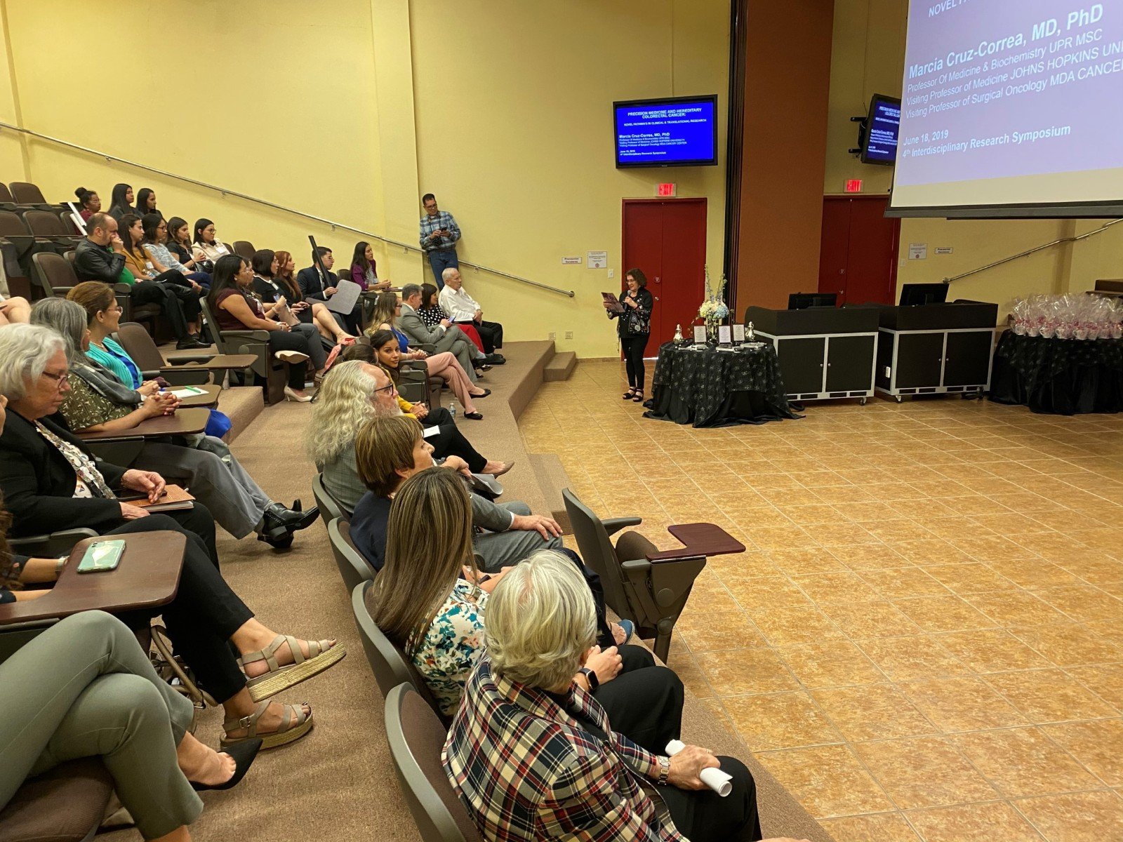 After the poster sessions, we were delighted to welcome Dr. Marcia Cruz -Correa, who delivered a motivating Plenary Conference entitled: Precision Medicine and Hereditary Cancer: Novel Pathways in Clinical & Translational Research. It was an honor to have Dr. Cruz-Correa sharing her experience in leading innovation and discovery for the advance of prevention and early diagnosis of colorectal cancer. Dr. Cruz Correa occupies multiple leadership positions, is a prolific scientific writer and researcher, and was recognized as the first Puerto Rican to be named a member of the National Cancer Advisory Board. She is an extraordinary role model, mentor, and leader that continues with the passion that characterizes her achievements in science and medicine.